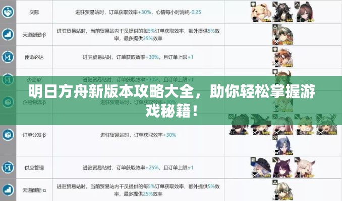 通过掌握以上攻略,玩家可以更好地适应明日方舟的新版本,提升游戏体验,希望玩家在游戏中能够享受到乐趣,与其他玩家共同交流、分享游戏心得,祝愿大家在明日方舟的新版本中取得更好的成绩!