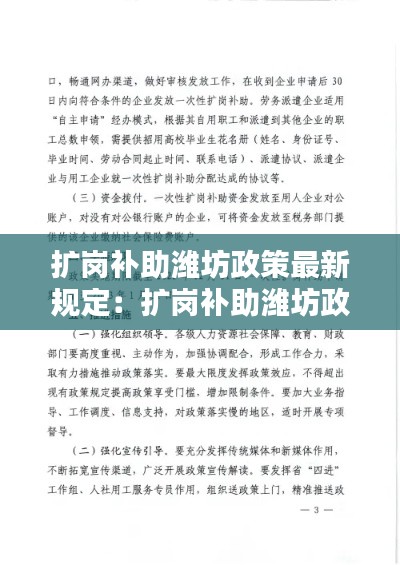 <p>随着我国经济的快速发展,就业问题成为社会关注的焦点。潍坊市政府为鼓励企业扩大就业规模,提高就业质量,特制定了扩岗补助政策。该政策旨在通过财政补贴,帮助企业降低用工成本,增加就业岗位,促进就业稳定。</p>