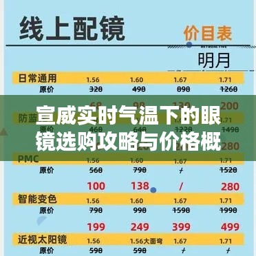 宣威的实时温度对于选购眼镜具有重要意义,在选购眼镜时,消费者应关注品牌、材质和功能等因素,并根据季节选择合适的眼镜,注意前往专业眼镜店或眼科医院验光,确保选购的眼镜度数准确,本文提供了宣威实时温度下的眼镜选购指南和价格范围,为消费者选购眼镜提供参考。