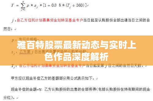 身为博客站长,我深知投资者们对于股票信息的渴求,尤其是像雅百特这样的热门股票,本文将为大家带来雅百特股票的最新消息,并探讨与其相关的实时上色作品。