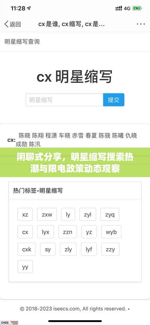 嘿,朋友!今天咱们来聊聊两个热门话题:一是明星缩写搜索,二是中国的最新限电消息,话不多说,咱们直接进入主题吧!