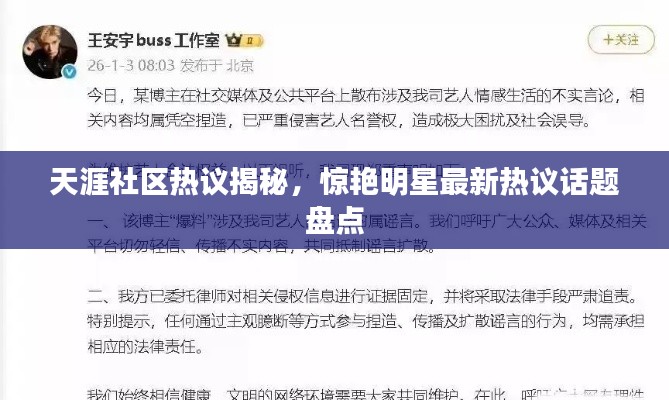 亲爱的读者朋友们,今天我们将一起探讨一个备受关注的话题——那些惊艳的明星以及他们在天涯社区的最新动态,本文将围绕这些关键词展开,为大家带来最新的天涯社区热议话题及相关资讯,让我们跟随时间的脚步,一起走进这个充满惊喜的明星世界。