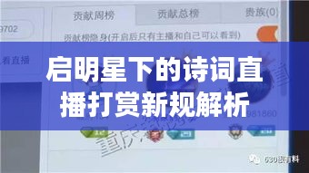 随着互联网的普及和直播行业的飞速发展,诗词直播打赏成为了一种新兴的文化消费方式,启明星作为引领行业风向的标杆,其诗词直播打赏新规的出台,对于规范行业行为、维护文化市场秩序具有重要意义,本文将详细介绍启明星诗词直播打赏的最新规定。