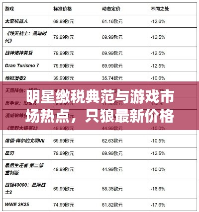 身为博客站长,今天我将和大家聊聊两个当下热门的话题:明星缴税典范与只狼最新价格,本文将围绕这两个关键词展开,探讨明星纳税的榜样作用以及游戏市场价格变动的影响。