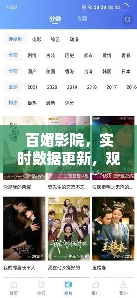 既然百媚影院和互联网软件的实时数据更新这么方便,那么我们应该如何更好地利用它呢?我们可以经常打开百媚影院,查看最新的电影和推荐,我们可以根据自己的喜好和观影习惯,选择感兴趣的影片观看,我们还可以利用百媚影院的社交功能,和其他观众交流观影心得,分享自己的喜好。