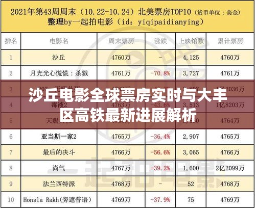 沙丘电影全球票房实时数据与大丰区高铁建设进展都是值得关注的重要信息,在关注的过程中,公众应保持理性,通过正规渠道获取信息,避免被虚假宣传误导,对于这两大主题的发展与应用,应深入探讨其背后的市场规律与发展趋势,确保相关决策的科学性与合理性。