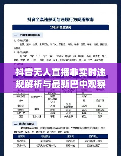 随着互联网的普及和社交媒体的飞速发展,抖音作为一款热门的短视频社交平台,吸引了众多用户和内容创作者,关于“抖音无人直播非实时违规”的话题引起了广泛关注,本文将围绕这一主题展开讨论,并结合最新巴中情况进行分析。