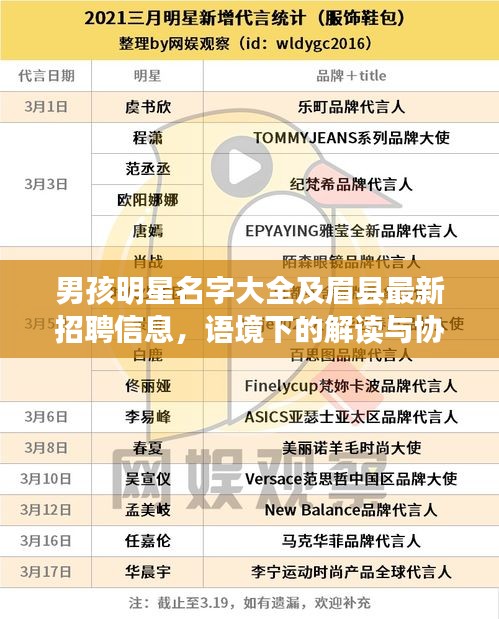 男孩明星名字大全与眉县最新招聘信息看似是两个不相关的领域,但在实际语境下,它们之间可能存在某种微妙的联系,从文化娱乐产业的角度来看,明星名字的传播与流行文化的发展密切相关,反映了公众对于娱乐产业的关注度和参与度,而从经济发展的角度看,招聘信息的发布反映了地方经济的发展状况以及人才需求,这两者看似没有直接联系,但实际上都与社会的文化经济发展息息相关。