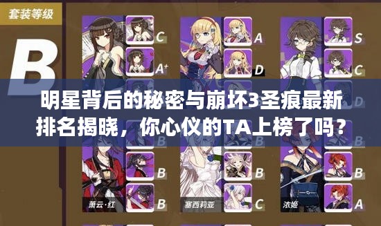 亲爱的崩坏3游戏迷们,大家好!今天我们来聊聊你们最关心的明星背后的秘密——崩坏3圣痕的最新排名,想知道你的偶像在游戏中的影响力如何吗?快来看看这份榜单,或许会有意想不到的惊喜哦!